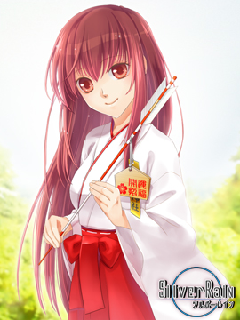 明野絵師の絵は可愛らしくて彩度が高いから、目に鮮やか。 赤茶の髪も赤重視だけど、背景のこれはー…鎮守の森だと思うけど、その緑と、敢えて空を青く塗らなくて赤が目立つように仕上げてくださいました。